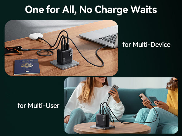 • 50% Smaller with GaN Tech: GaN technology makes it ultra-compact for tight spaces, yet powerful enough to charge three devices simultaneously.
