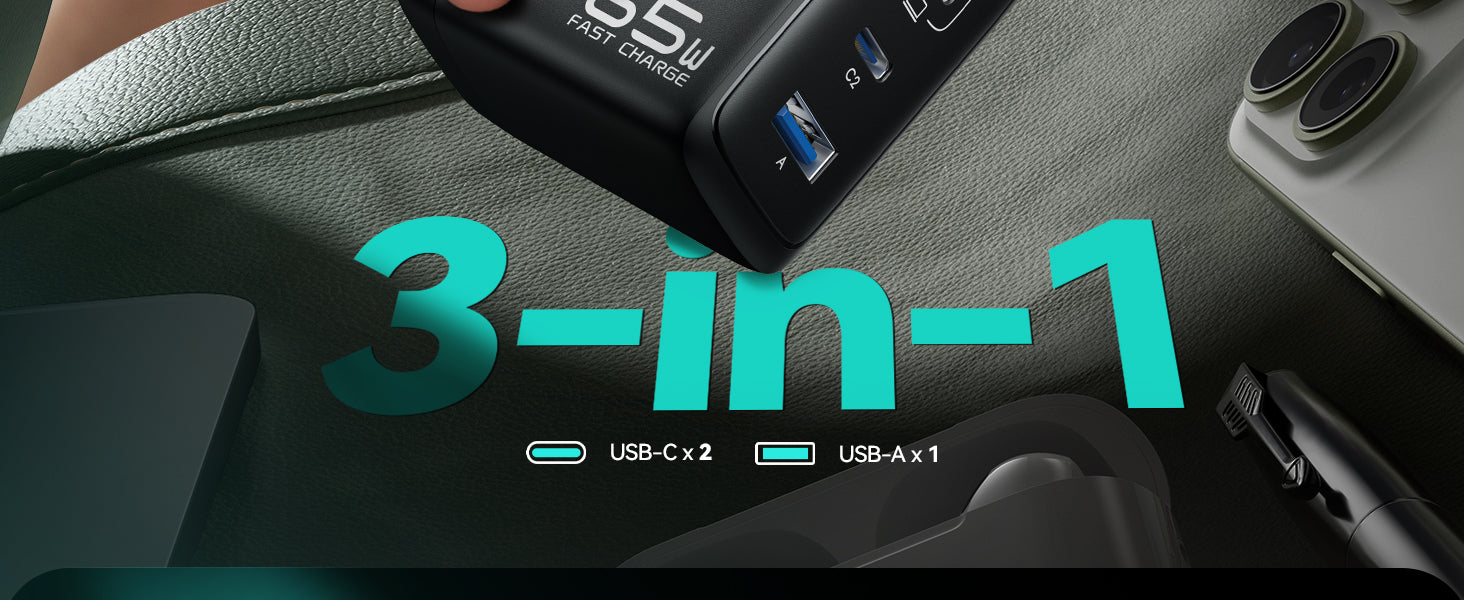 • 3-in-1, Travel Light: Replace three chargers with onelighter bags, less clutter.