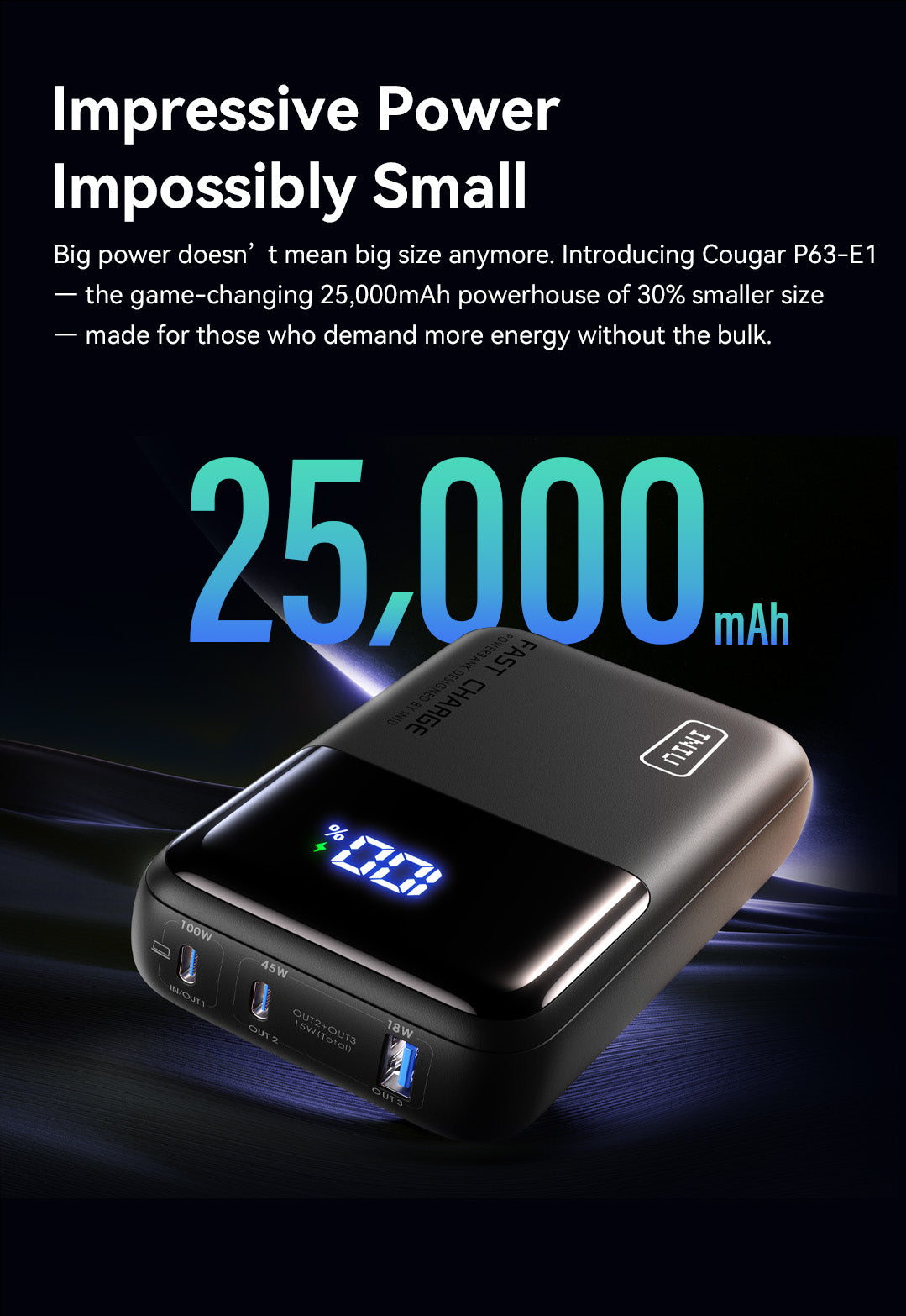 INIU Cougar P63-E1 Power Bank najmniejszy 100 W 25000 mAh