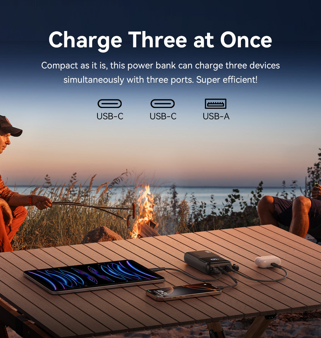 Dzięki pojemności 25 000 mAh i o 30% bardziej kompaktowej konstrukcji, ten powerbank zmieści się w torbie, oszczędzając miejsce i zapewniając ładowanie urządzeń. Dodatkowo, w zestawie znajduje się zintegrowany kabel USB-C do ładowania, zapewniający maksymalną mobilność.