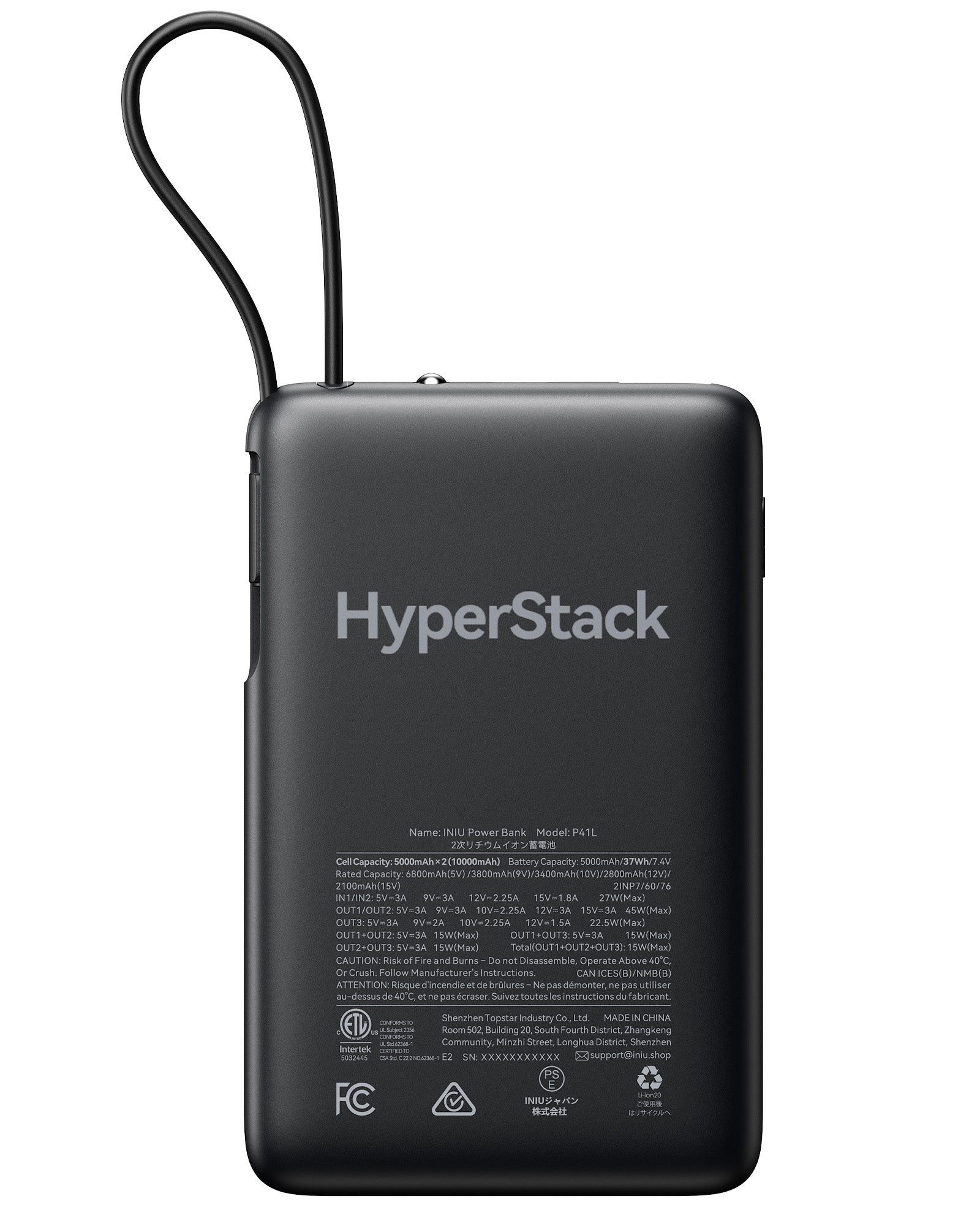 INIU Łapowaty P41L-E2 Power Bank z wbudowanym kablem, najcieńszy 45 W, 10000 mAh