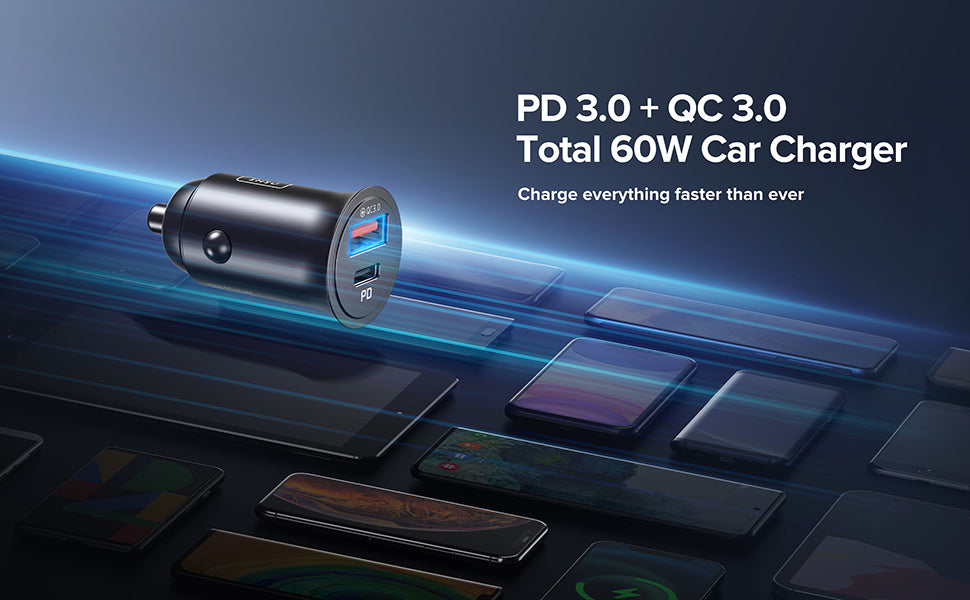 W przeciwieństwie do większości ładowarek samochodowych z dwoma takimi samymi portami USB, ta ładowarka posiada porty USB C o maksymalnej mocy 30 W i USB o maksymalnej mocy 30 W. pasuje do wszystkich urządzeń i ładować 2 urządzenia jednocześnie.