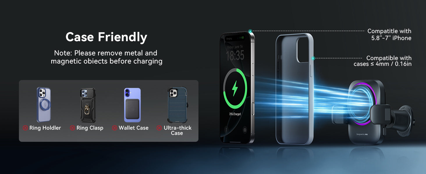 INIU Magnetyczny uchwyt samochodowy do bezprzewodowej ładowarki Qi2 SnapGo V11-E1 15 W