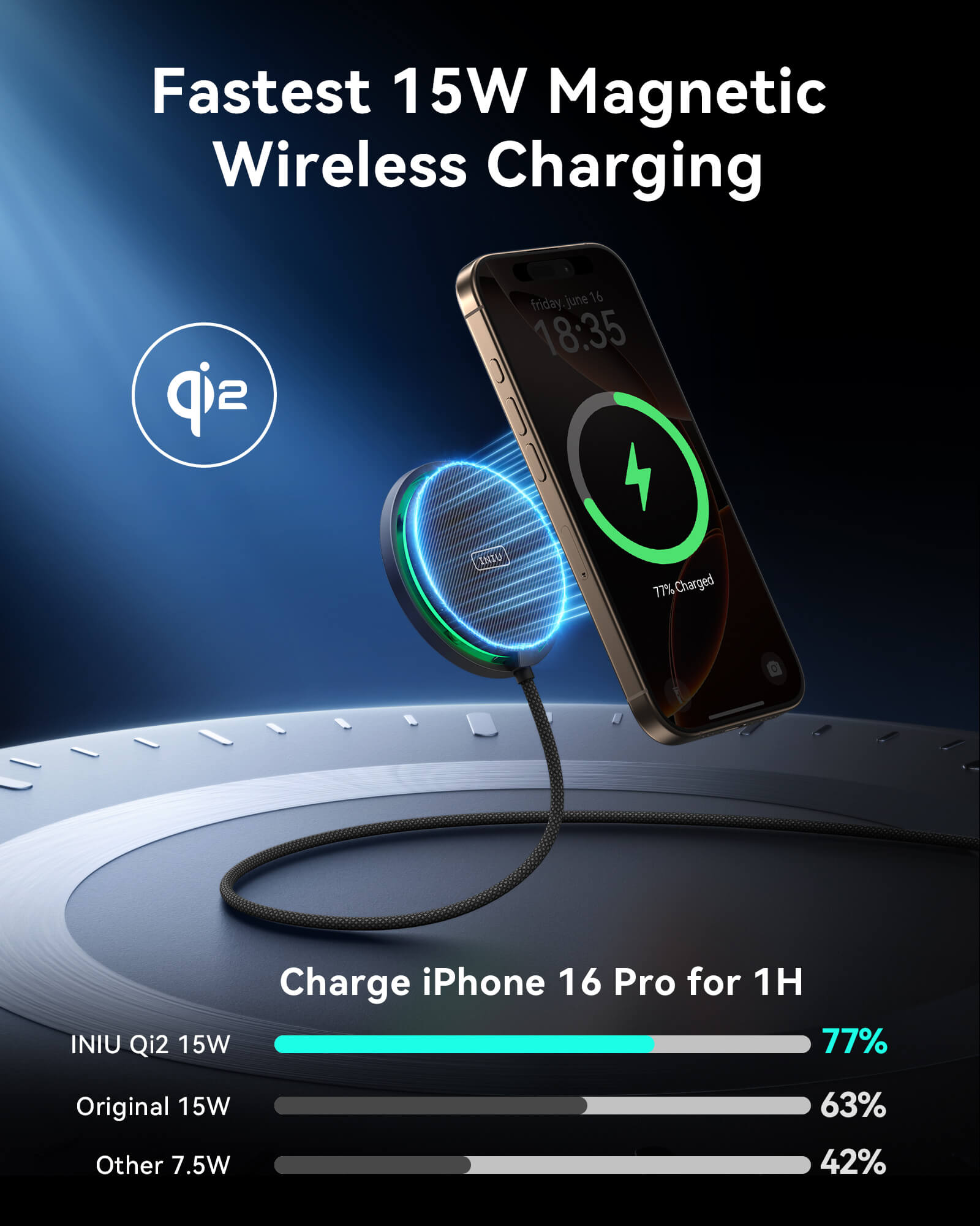 INIU Ładowarka bezprzewodowa Qi2 W11-E1 15 W z magnetyczną diodą LED