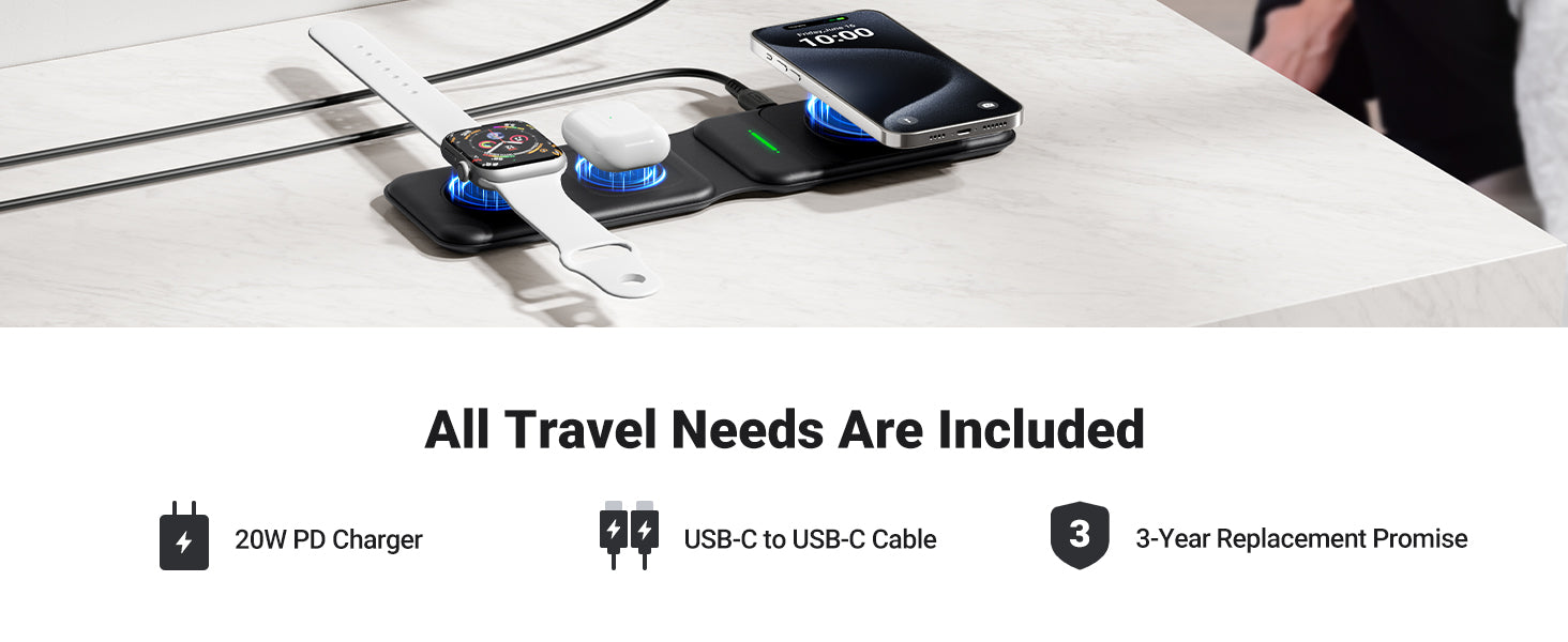 INIU SnapGo WI222 Bezprzewodowa podkładka ładująca i stojak 3 w 1, 15 W, magnetyczna, wielofunkcyjna