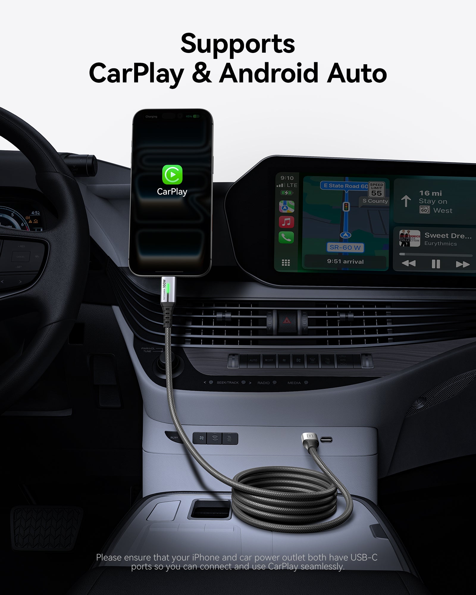 100W fast-charging USB-C toUSB-C cable is built with Certified E-Mark dual chip, auto-detects devices and delivers required power, keeping you in light-speed charging and safe.