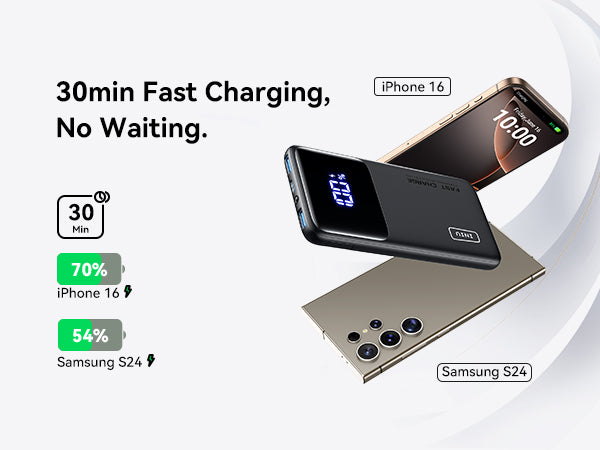 INIU B6 10,000mAh 22.5W, Built-in Holder,Compatible with iPhone 14 13 12 Pro Samsung S21 Google LG iPad Tablet, etc.