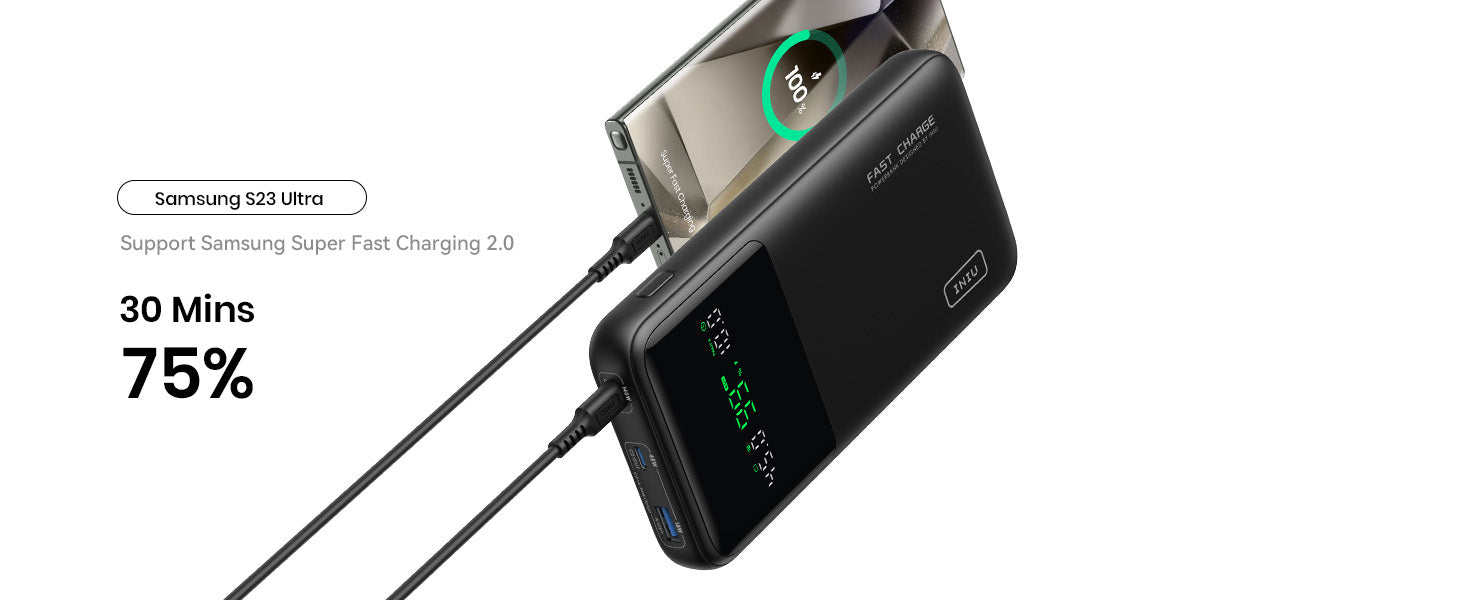 The product support pass-through charging, allowing the power bank to charge other devices while itself being charged.