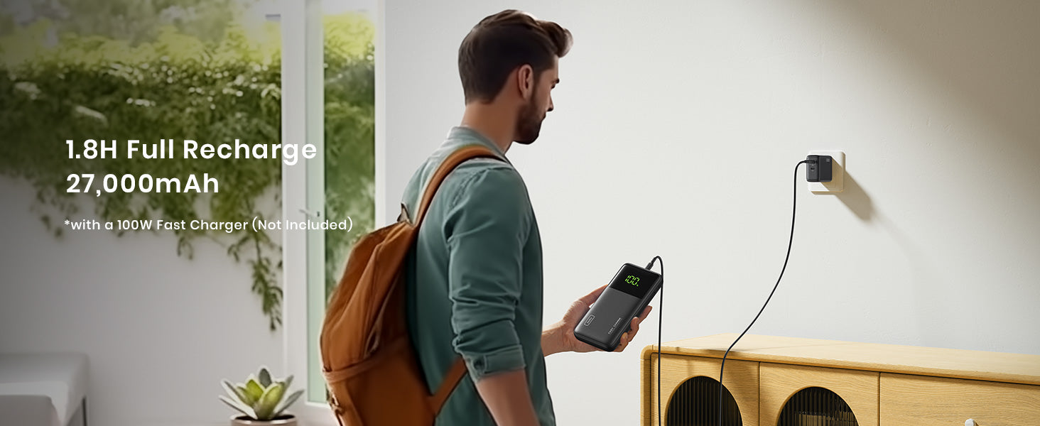 Our power bank features a robust 27000mAh capacity, which is generally sufficient for charging laptops. Many customers have reported successful full charges for their laptops multiple times, including a Lenovo laptop being charged from empty to full twice. However, charging capabilities can vary depending on the laptop model and its specific power requirements.