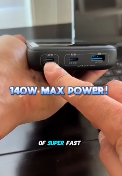 This power bank has a 27,000mAh capacity which is airline approved. It can charge multiple devices like phones, laptops and tablets several times before needing recharging.