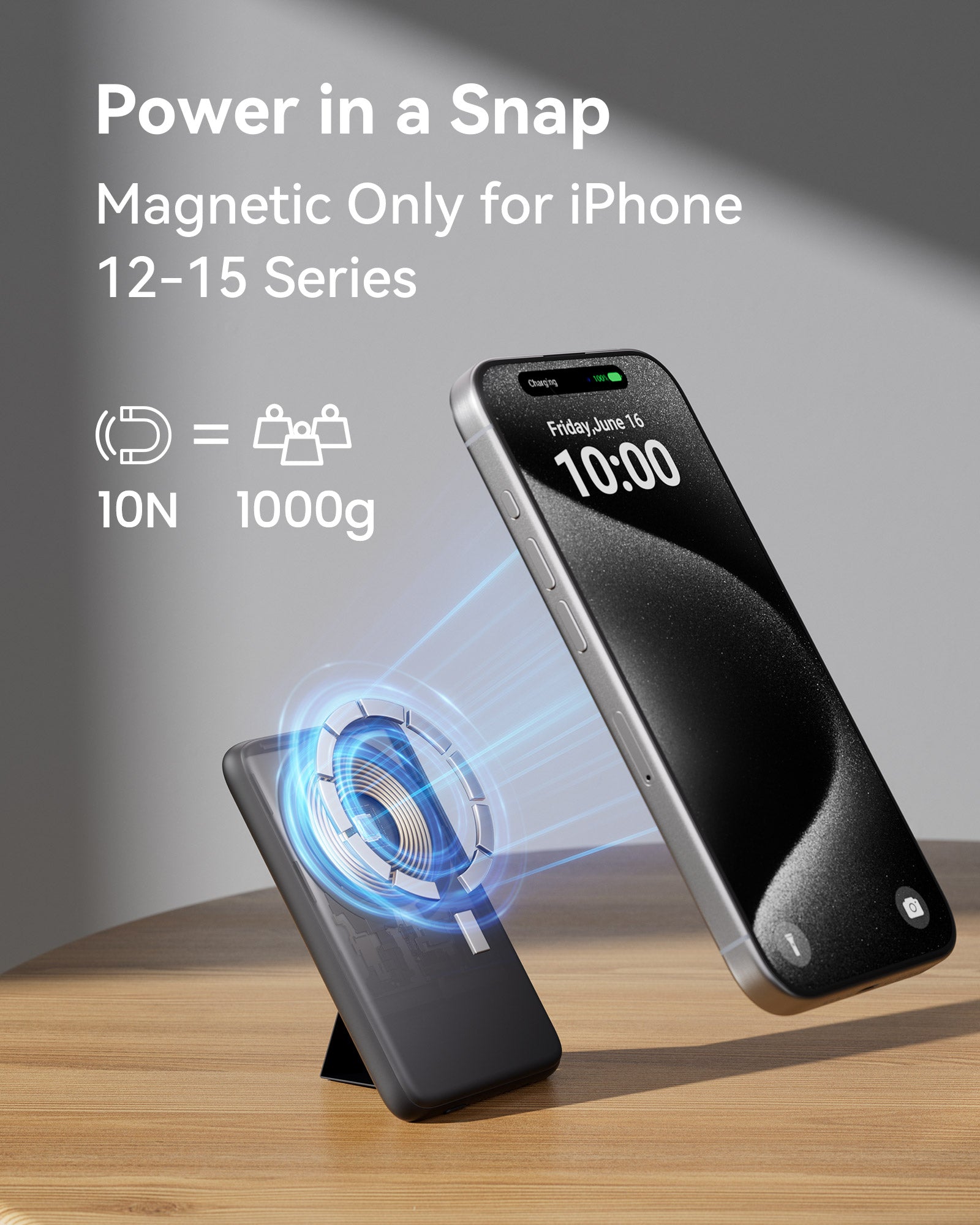 - [Born for iPhone 16/15/14/13/12 Series] Bid farewell to tangled cables and bulky charging. Our magnetic wireless power bank is tailored for your iPhone's MagSafe technology, ensuring a seamless, one-handed attachment and high-speed charging.[Note: Magnetic charging function is ONLY compatible with iPhone 16/15/14/13/12 series.]