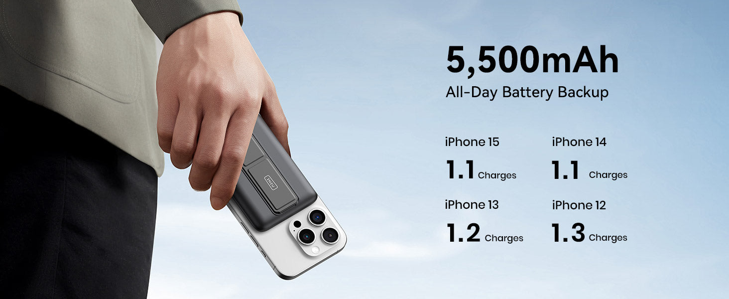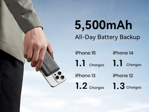 - [All-Day Power on Demand] With an impressive 5,500mAh capacity, you can count on a full day's worth of extra power for your iPhone 12-16 series. Perfect for travelers, adventurers, or those hectic days when you can't afford to be without your device.