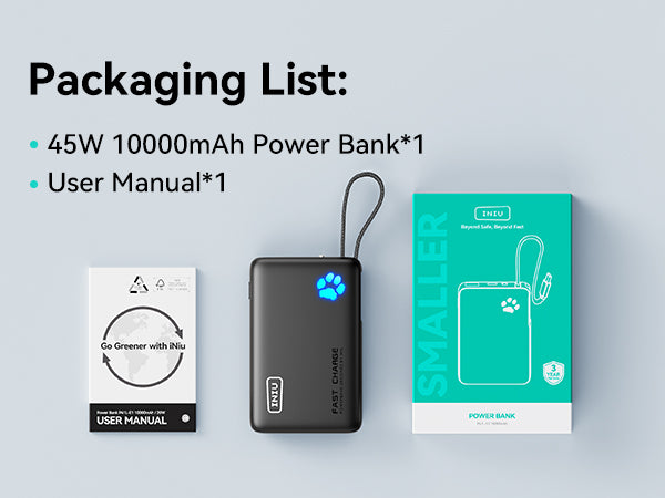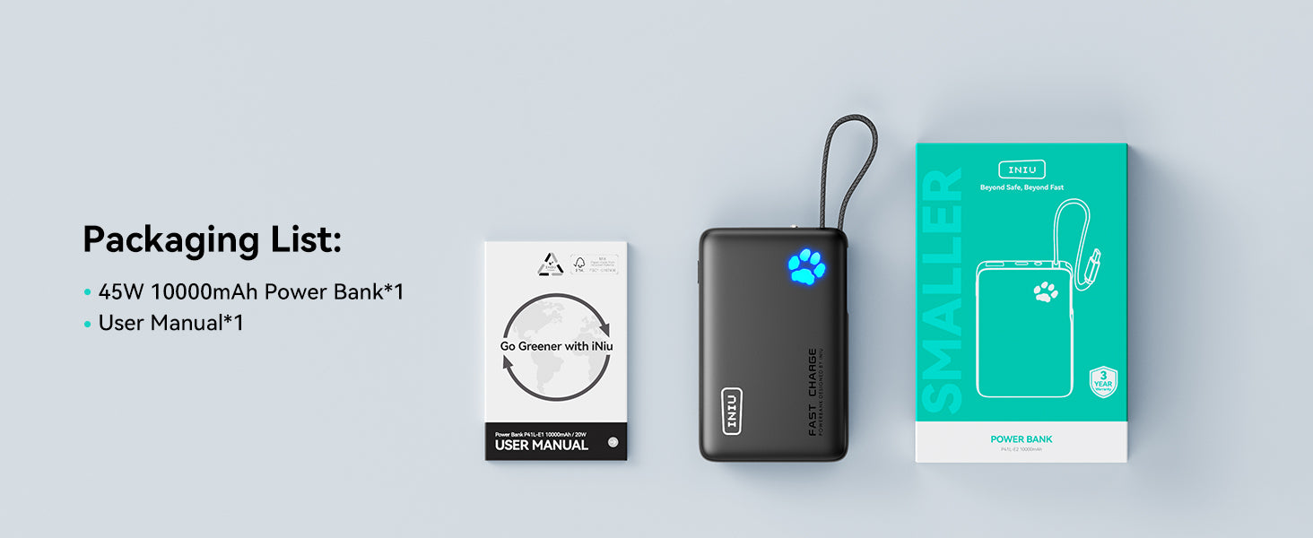 INIU Pawsible P41L Power Bank with Build in Cable Slimmest 45W 10000mAh
