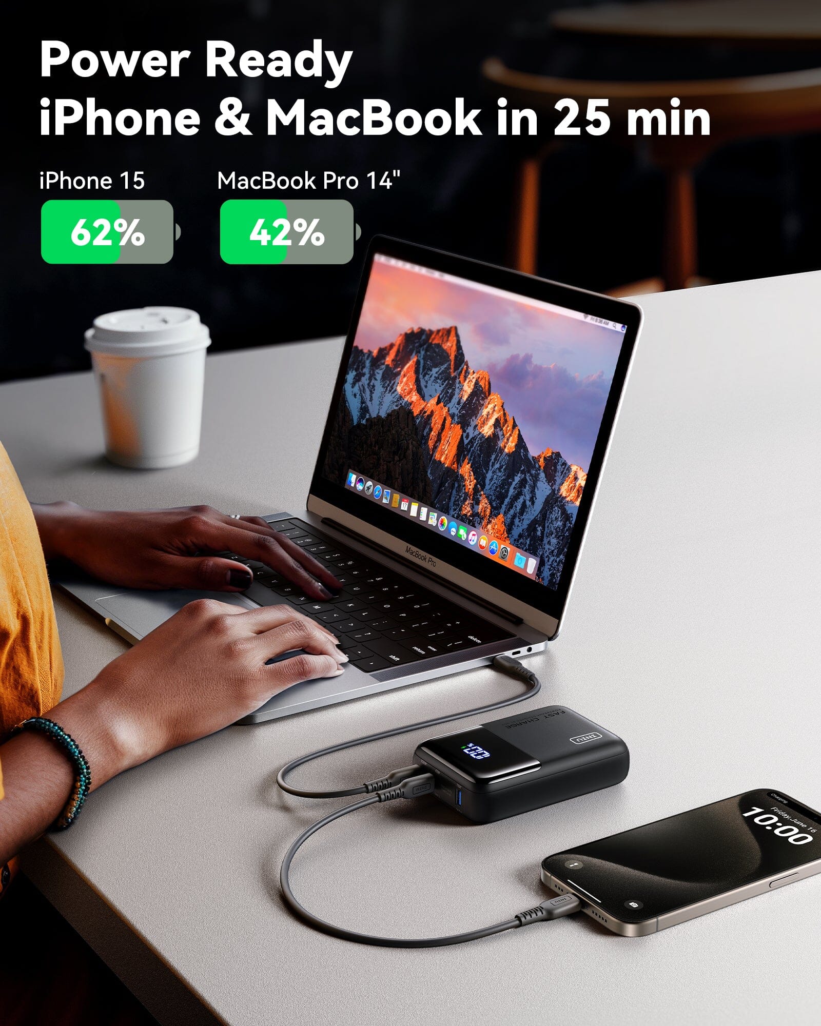 With 25,000mAh of energy in a 30%more compact design, this power bank slips right into your bag, saving space while keeping your devices charged. Plus, it includes a lanyard-integrated USB-C charging cable for ultimate portability.
