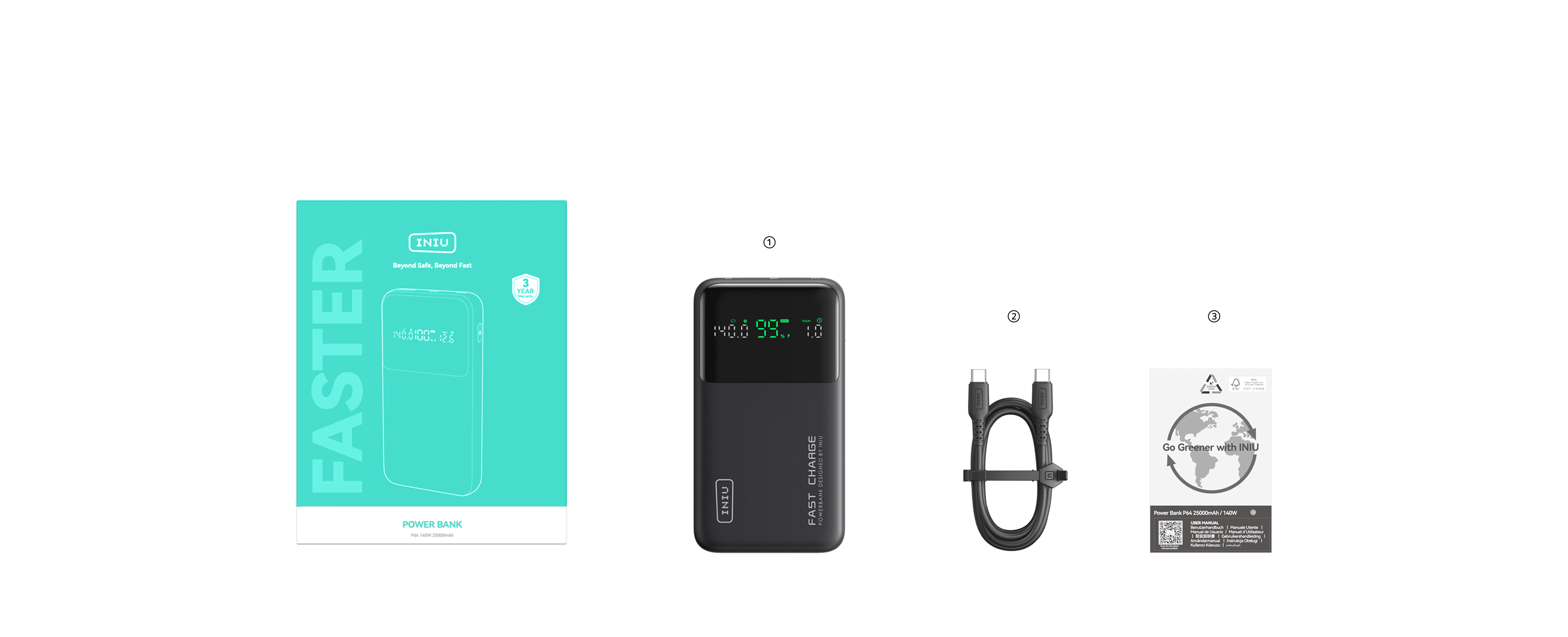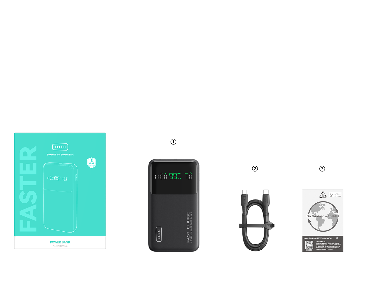 The P64-E1 Gift Set combines a high-capacity, high-wattage power bank with a premium nylon USB-C INIU D7CC charging cable, offering a complete and powerful charging solution. Packaged in an elegant gift box, it’s not only practical for daily use but also one of the best tech gifts for family and friends.