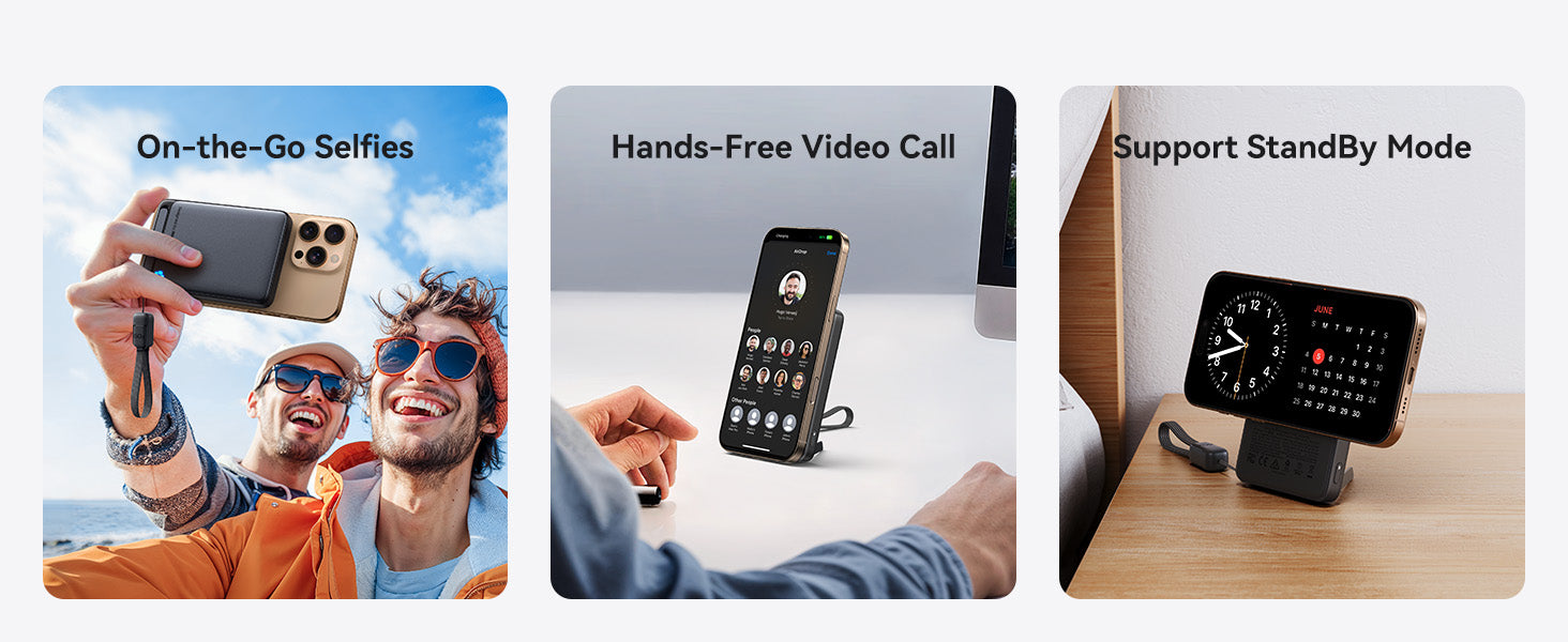 - [Hands-Free Viewing with Foldable Stand] Use the integrated stand to charge vertically for hands-free video calls or horizontally for movie watching, while also accessing StandBy mode with ease.