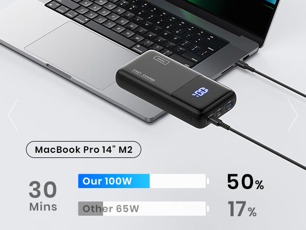 - [100W Power Beast Fast Charging for All Devices]Elevate your charging experience with our cutting-edge power bank. It's optimized to deliver a whopping 100W of power, ensuring lightning-fast charging for flagship laptops, enabling you to stay productive without being tethered to an outlet.