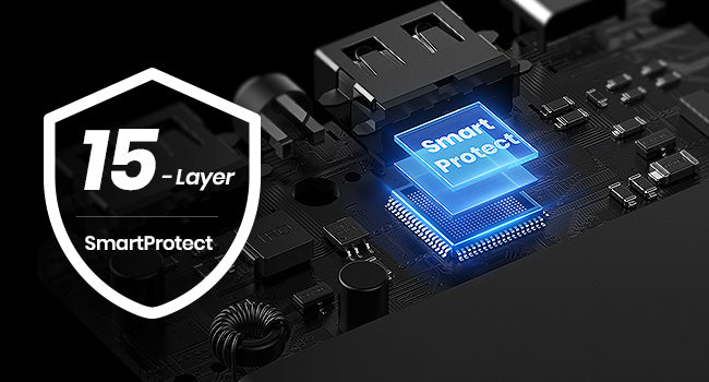 15-Layer SmartProtect shrugs off 15 possible charging risks: farewell to overheating and device damage.