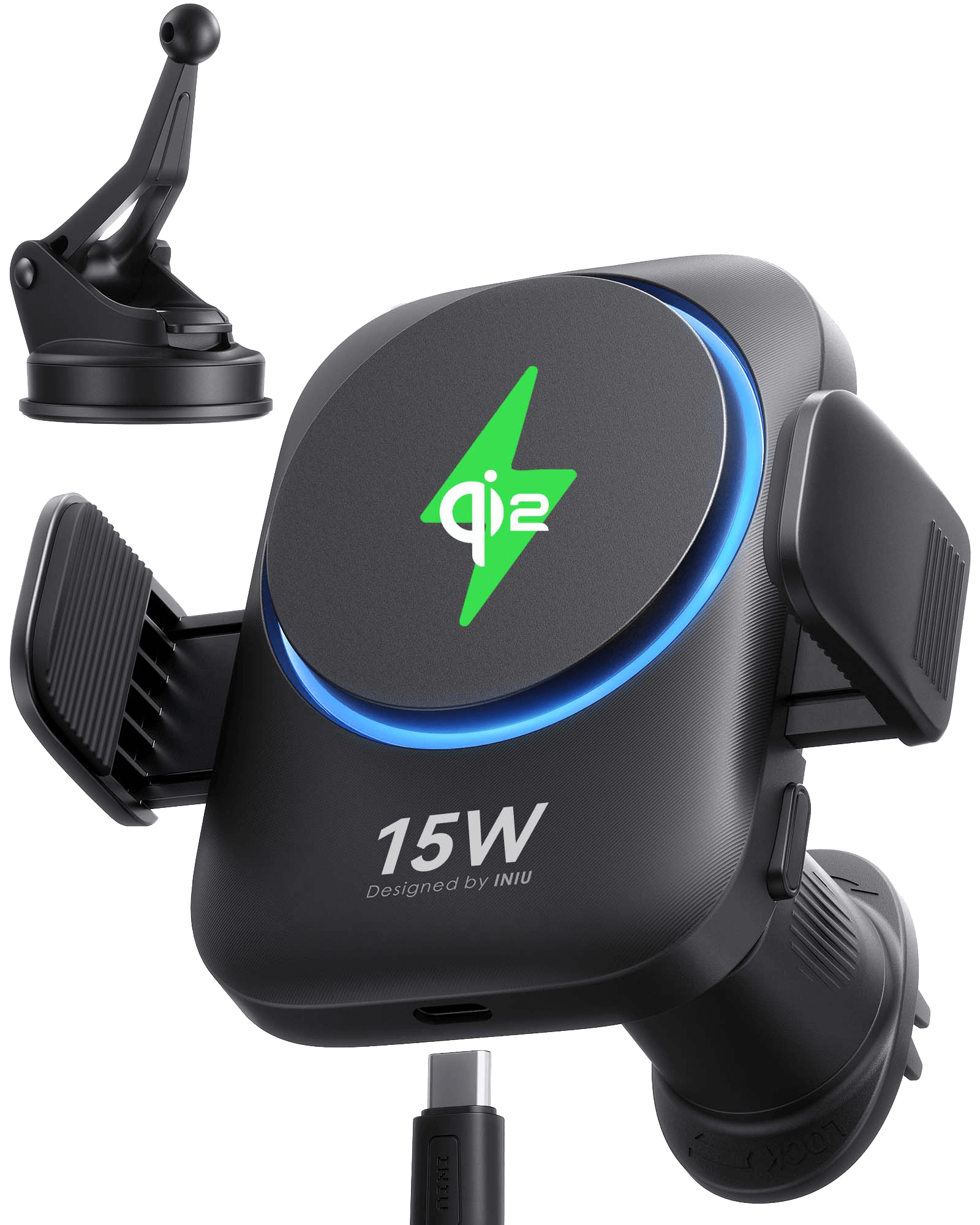 INIU SnapGo V11-E1 Qi2 15W Magnetic Wireless Car Charger Black