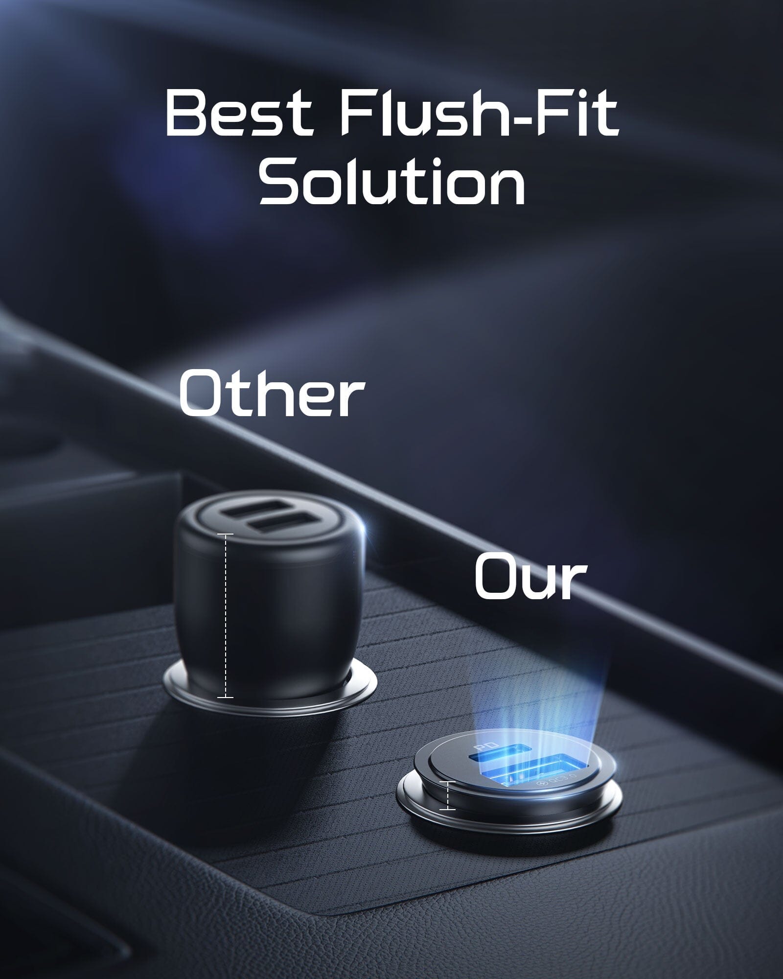The blue LED light inside the ports will help you quickly find the charger when driving at night, and it’s designed to be so gentle on the eyes to avoid causing distractions to the driver.