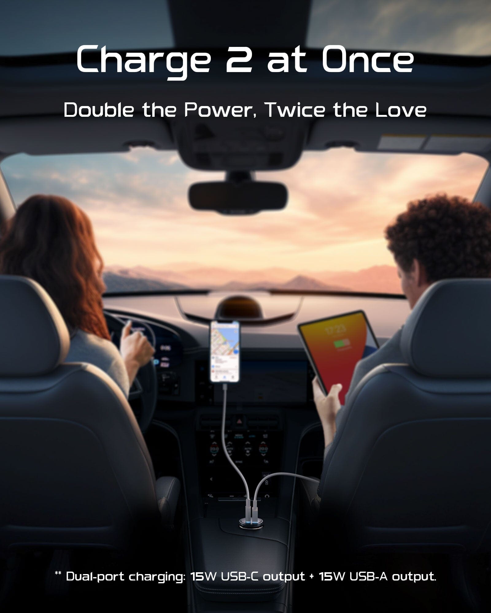 Unlike most car chargers with 2 same USB ports, it features 30W max USB C and 30W max USB ports to fit all devices and charge 2 devices together.