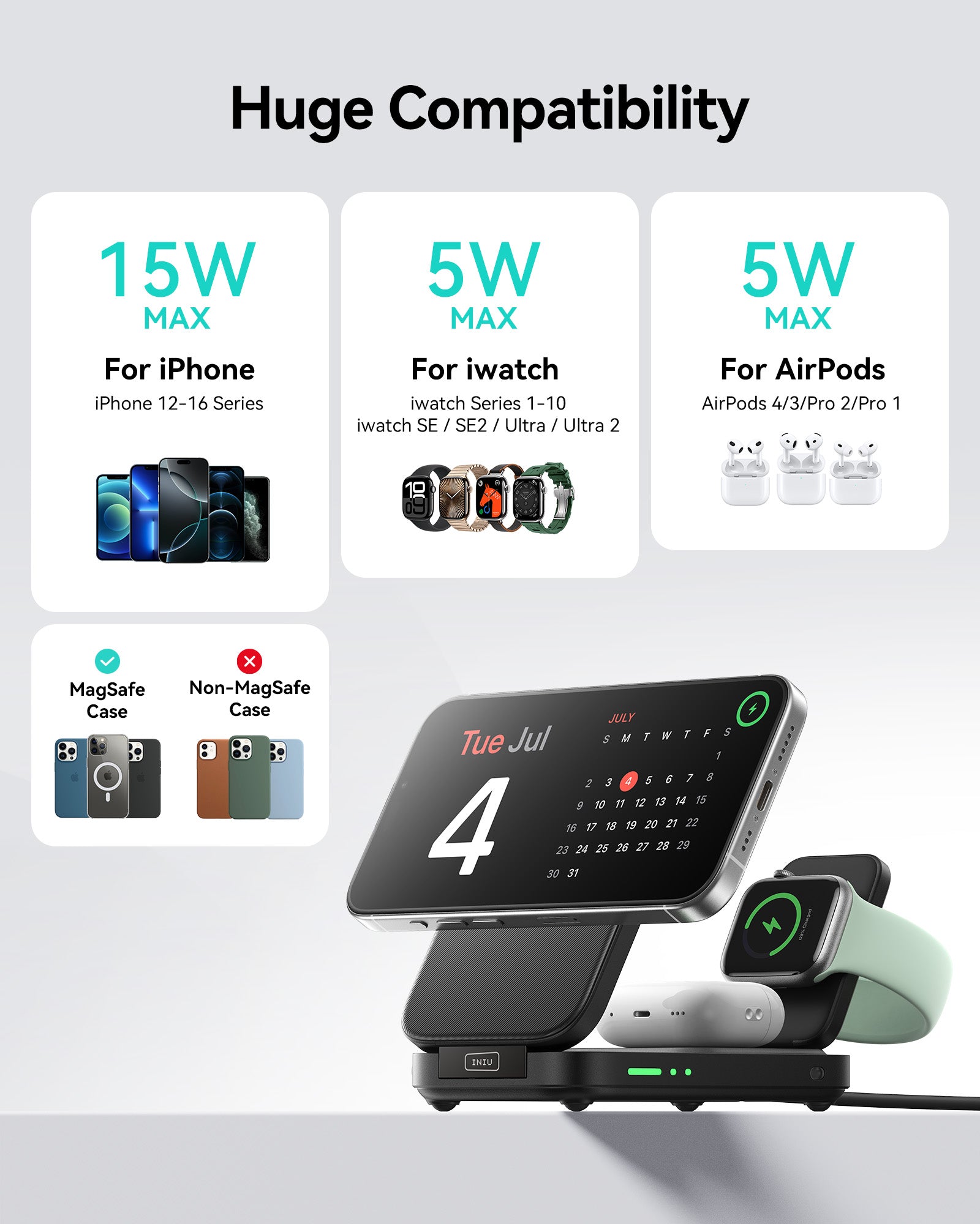 INIU SnapGo W31-E1 Qi2 15W 3 in 1 Magnetic Foldable Wireless Charger